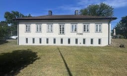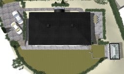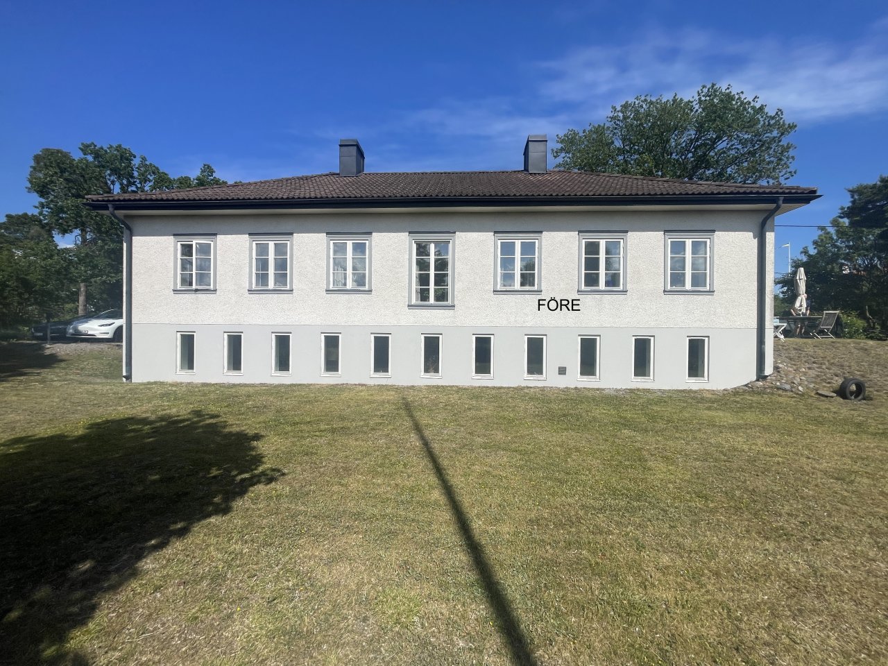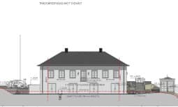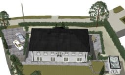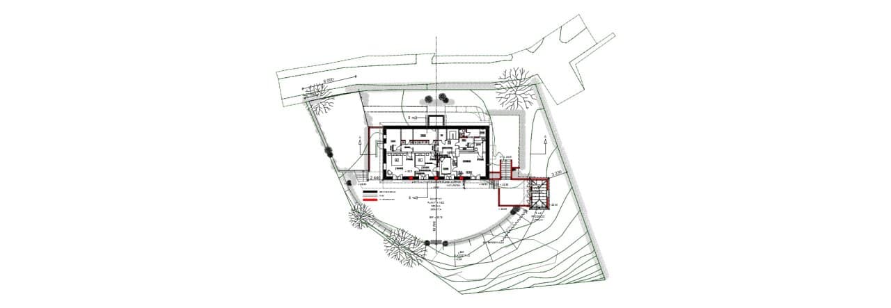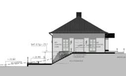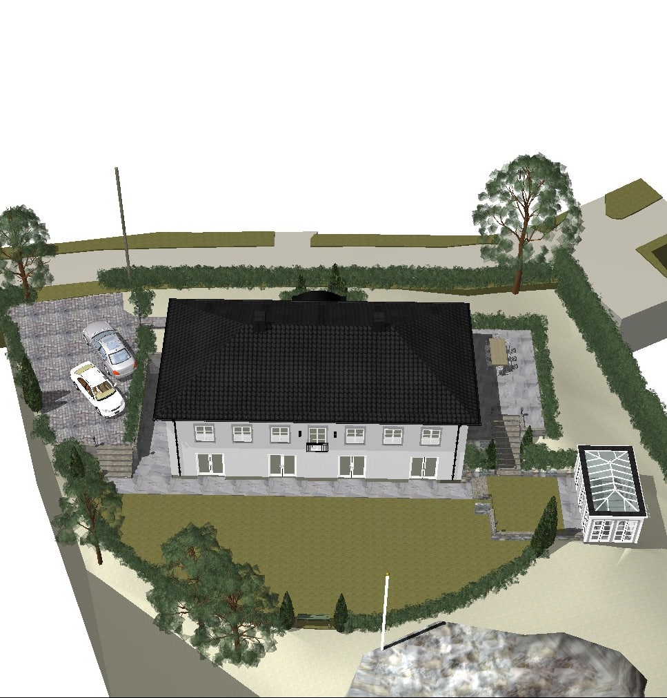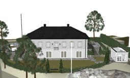 Sagt och gjort – en mer markerad bågformad yta planerades och den rad av smala mindre källarfönster skall ersättas med fyra stycken nya glasade dubbeldörrar för att ge en mer uppgraderad stolt pampig värdig träsgårdsfasad utåt.