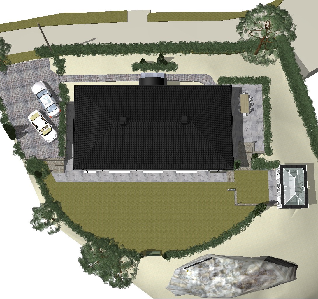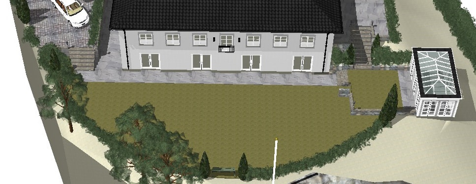 Denna fina högt belägna fastighet med underbar utsikt och trädgård var i behov av uppgradering. Större delen av den plana delen av tomten behövde sänkas med ca 58 cm för att skapa en bättre koppling mellan källarplanet och trädgården utanför.